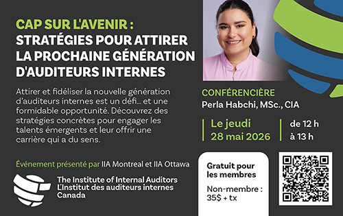 Tarif : Membre IIA et partenaires ACFE / IFACI / ISACA : gratuit | Non-Membre : 35$ + tx.